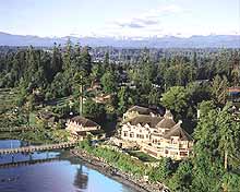 キャンベルリバーの対岸にある伝統的なフィッシングリゾートです。世界中から釣りキチガイがたまらないところとして有名です。タイイーサーモン(BC州で30ポンド以上のキングサーモン)を手漕ぎボートで釣り上げたものだけが入れるタイイークラブがあります。 |