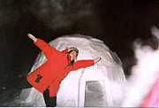 郊外から犬ぞりに乗って山深い山中でユルツ(テント):上の写真はテントの中)に滞在して 昼間は、動物の足跡を追っかけたり、カリブーの群れをみたり、夜は大自然の中突然オーロラが 出現し、感動の連続でした。未体験な体験(冒険)が出来てとても楽しかったです。 お客様もヨーロッパや南米からも参加してにぎやかな毎日でした。 |